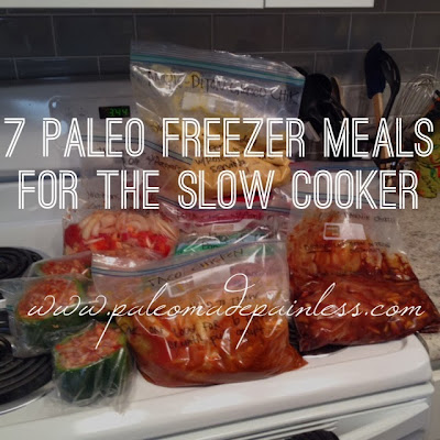 I started by googling the crap out the words "paleo" "freezer" "slow cooker" "meals" and I found a few websites that I pulled these from.... www.theascentblog.com; www.graciouslysaved.com; www.lovingmynest.com and http://blog.stuffimakemyhusband.com. I think I changed at least one thing if not more on almost every recipe I made.